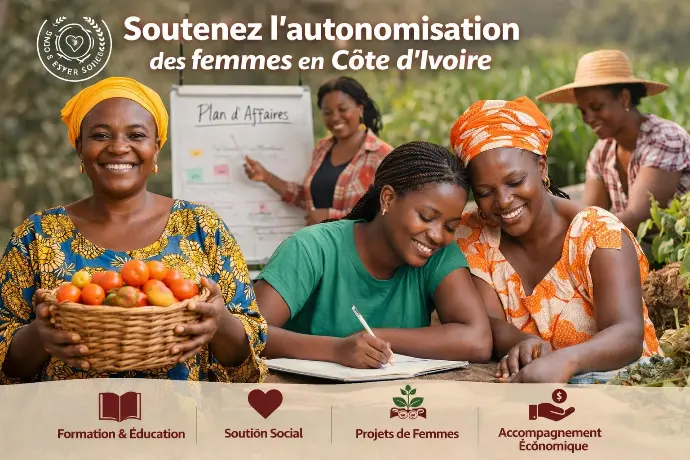 Votre soutien permet à l’ONG AFFIBA – Esther Solidarité d’accompagner des femmes ivoiriennes dans l’entrepreneuriat, l’autonomie économique et la création d’activités durables à travers le pays.